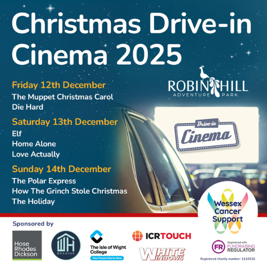 Enjoy a trip to the movies from the comfort of your own car and get Christmas started in style at Wessex Cancer Support IOW’s epic drive-in cinema