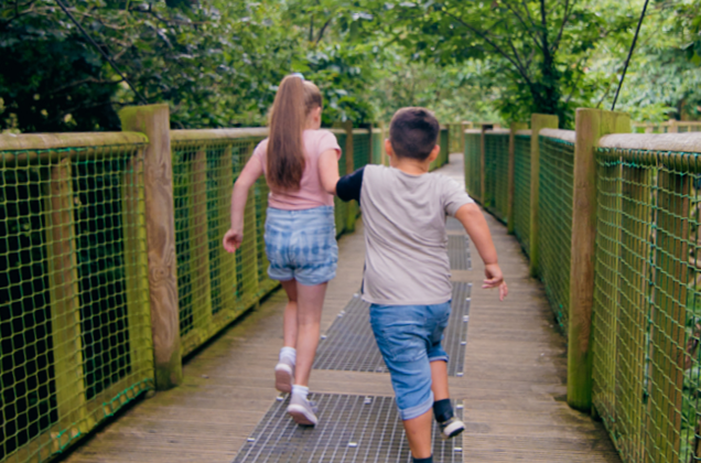 The majority of the park is accessible by wheelchair but some paths are gravel or grass based. Visitors in manual wheelchairs who wish to visit all areas of the park should be accompanied by strong helpers. Those using electric mobility scooters must ensure they are confident in using the equipment and do not exceed its capabilities. Particular attention should be paid to the paths leading to and from the Squirrel Tower (Canopy Skywalk), The Tree House and The Falconry Area where gradients are likely to be at their steepest. Our Big Red Tractor Ride is unable to take mobility scooters.
